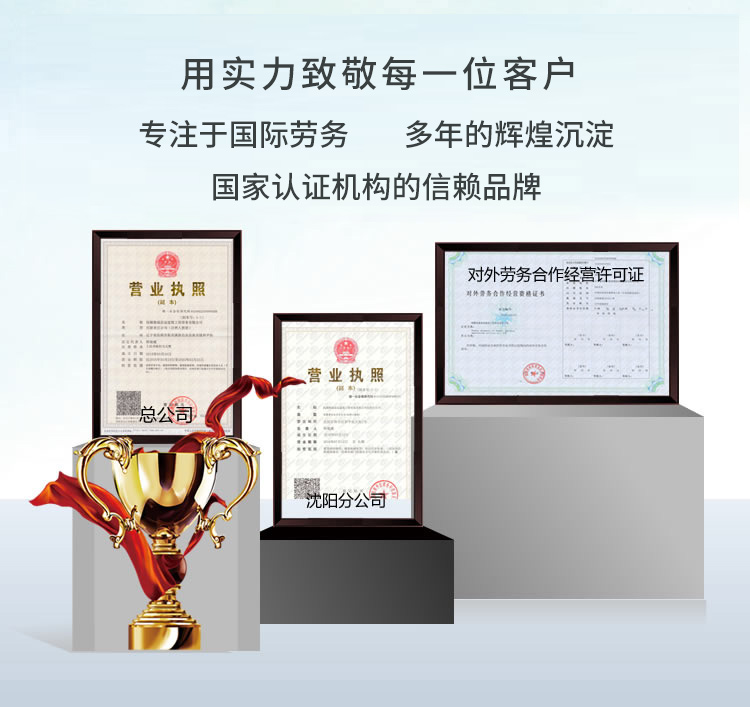 公司专注于外派劳务多年,注册资金600万,具有人力资源服务许可证,《对外劳务经营资格证书》及职业技能培训学校三项资质的专业服务机构,是一家以人为本规范服务的出国劳务企业。