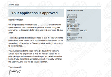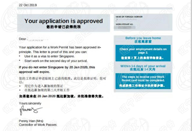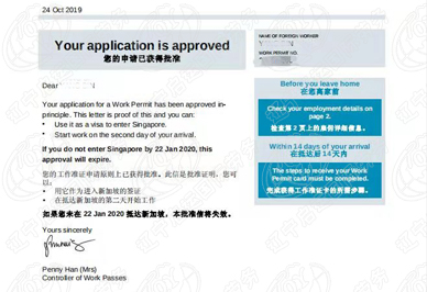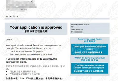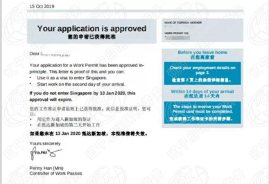 2019年10月15日新加坡普工孙先生签证