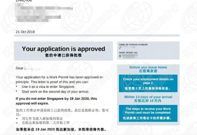 2019年10月21日新加坡美发师赵先生签证