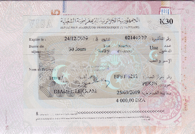 2019年9月26日阿尔及利亚建筑工人郭先生签证